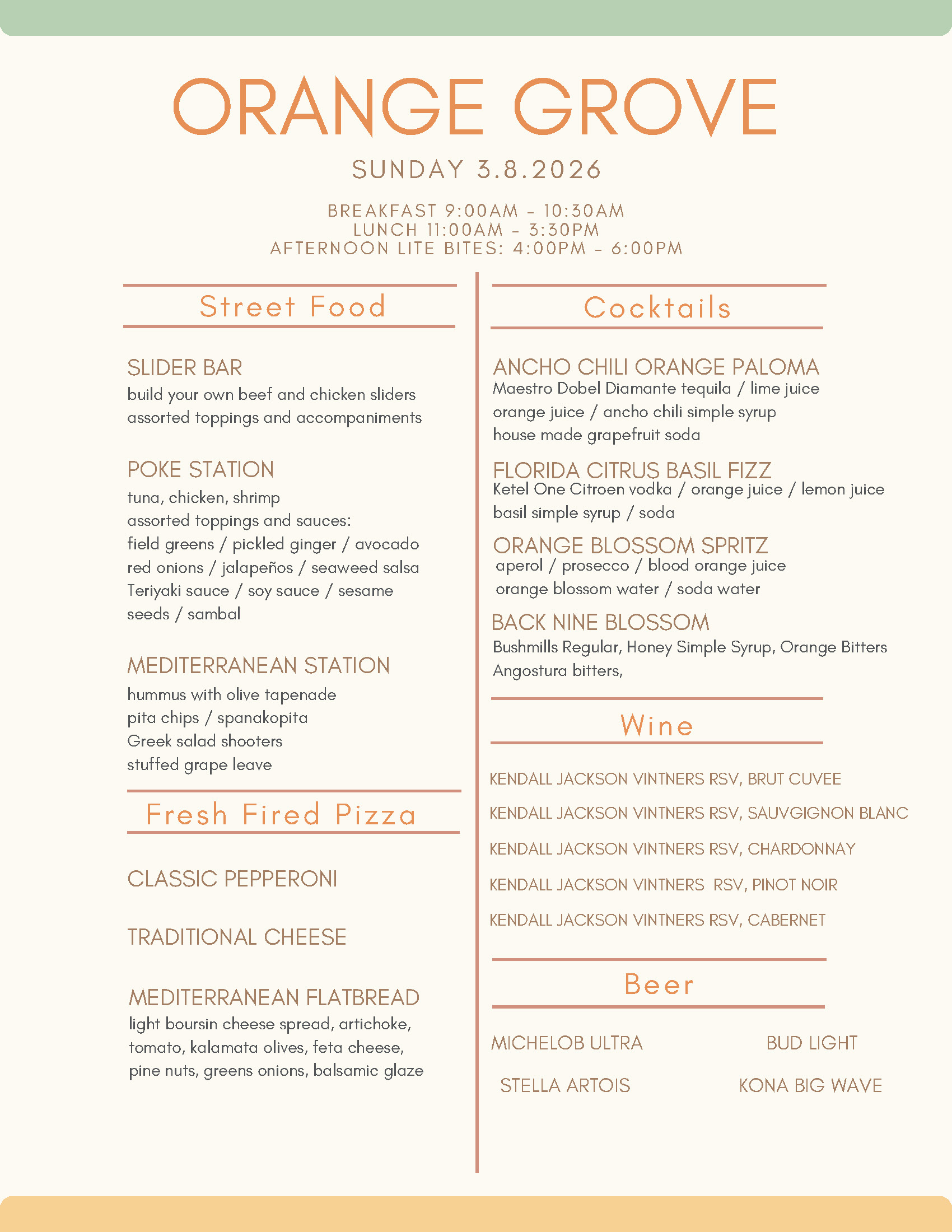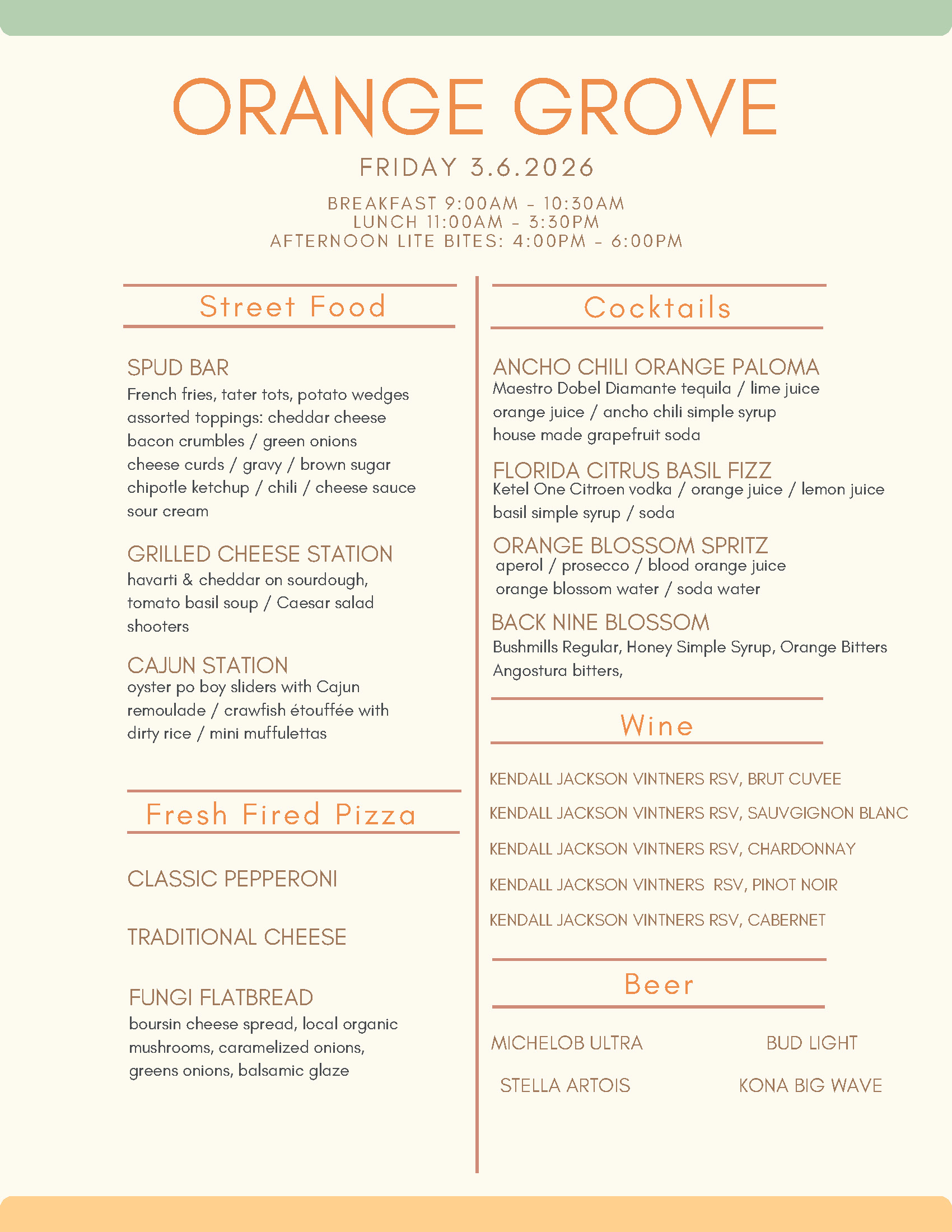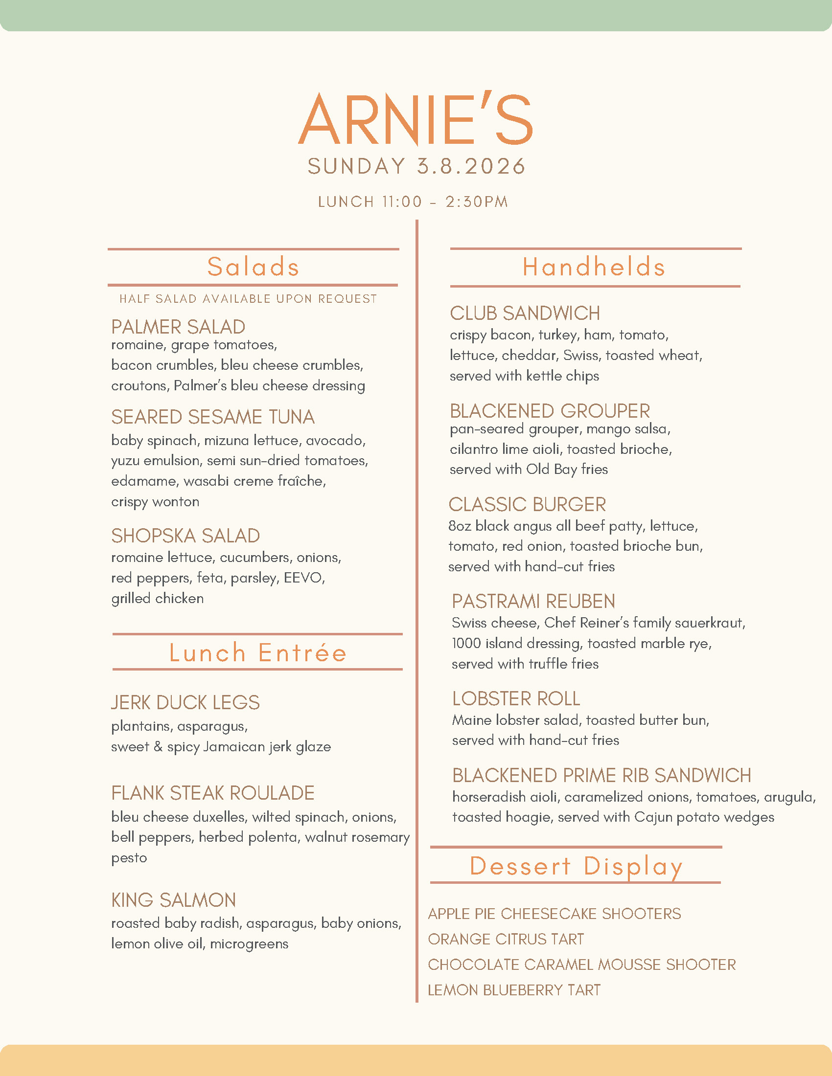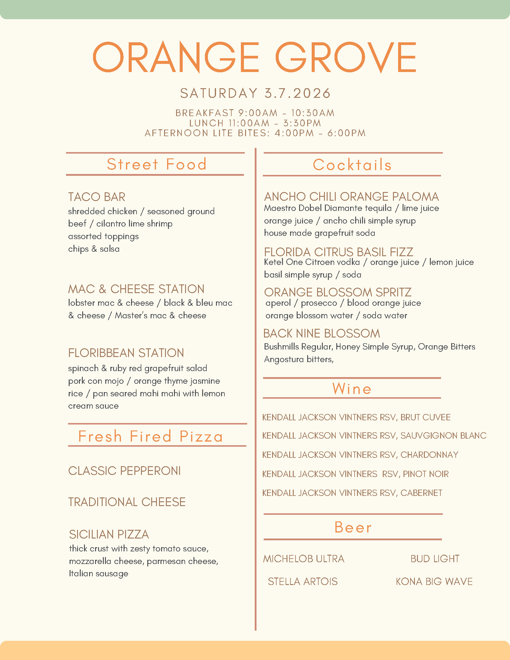 Located inside the Bay Hill Clubhouse, Arnie’s offers reserved table seating and food service daily during lunch hours in a private intimate setting.